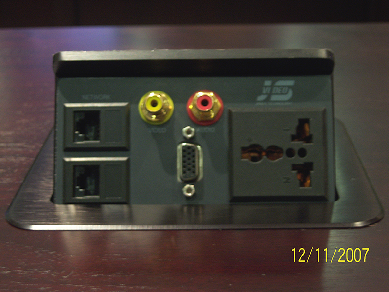 JS series interconnect box is to remove the obstacles by combine all sockets in one plate and special designed conceal structure. It is ? ush- mounted on tabletop with cables connected under table in orderly. Users just need to open the top panel that all ports or cables will appear for use.