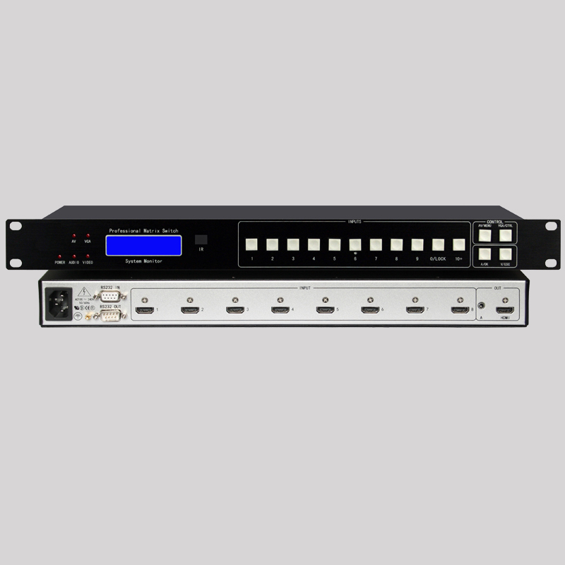 ?HDMI加音頻切換器系列8路進1路出針對超高清視頻信號傳輸主流化的應用環境開發了4K*2K HDMI+A系列切換器,該系列切換器采用多路進單路出的架構模式,通過多種控制方式管理應用環境中音視頻信號的輸入輸出。產品外觀端莊大方,質感性較強;硬件芯片組性能優越穩定、切換處理速度快捷、收發分辨率可達4K*2K/30Hz、發送與接收距離均可達30米(1080P/60Hz)、視頻信號傳輸質量無失