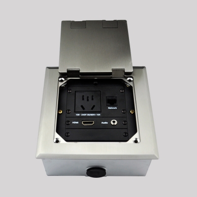 JS(金視)系列可藏式接線盒可以完美的展現(xiàn)線纜及接口的隱藏,且操作比較簡(jiǎn)單,通過(guò)按壓(或掀起)接線盒表面面板來(lái)實(shí)現(xiàn)彈開(kāi)和閉合,閉合后所有接口都隱藏起來(lái),各種線纜可以有序的隱藏在接線盒后面,接線盒面板表面與桌面保持水平。